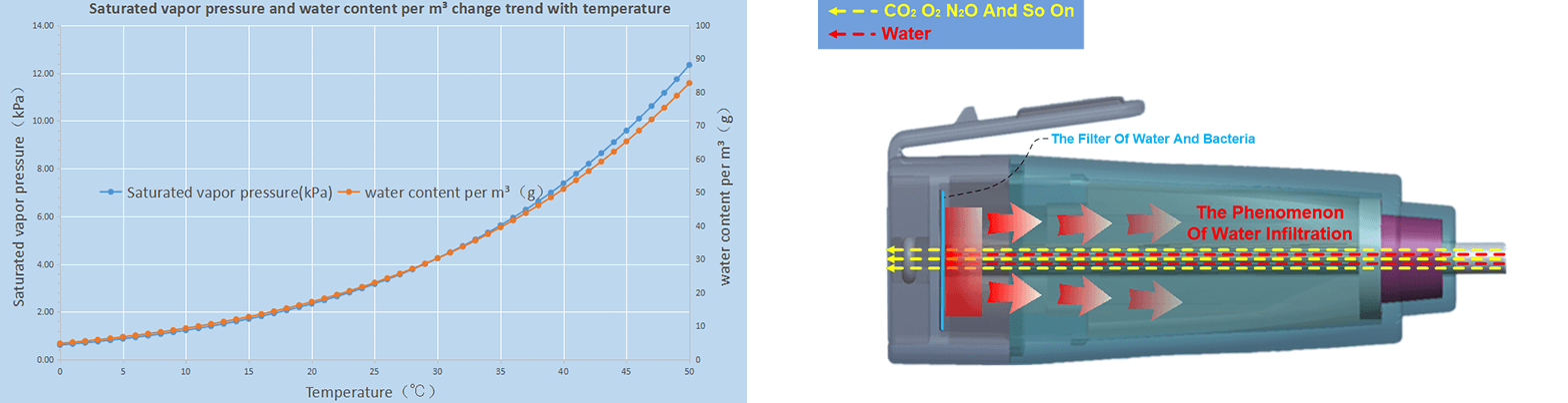 Tiniline® is a key patented technology for micro-flow end-of-breath carbon dioxide measurement gas sampling, which achieves dehumidification and bacterial filtration of the sampling gas. When the ambient temperature is lower than the body temperature, condensed water will form on the wall of the sampling tube from the sampling gas. When the amount of water reaches a certain level, the droplets will move along with the direction of the sampling gas.