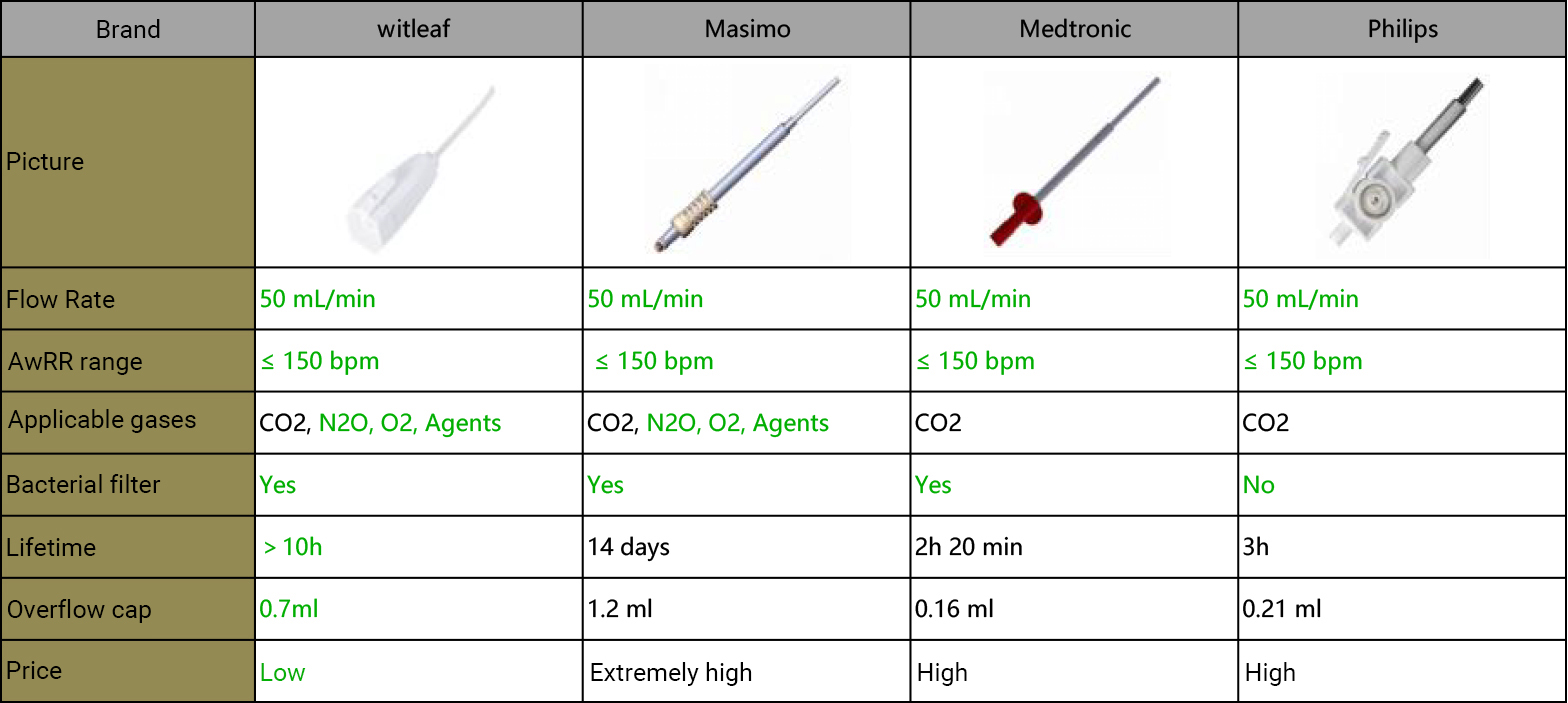 To prevent water droplets, bacteria, and other foreign objects from entering the interior of the measuring device and causing contamination or damage, Witleaf has designed a water vapor filter based on the microflow sampling tube that can be used for sampling and filtering of the microflow EtCO2 modules. This technology is defined as Tiniline®.