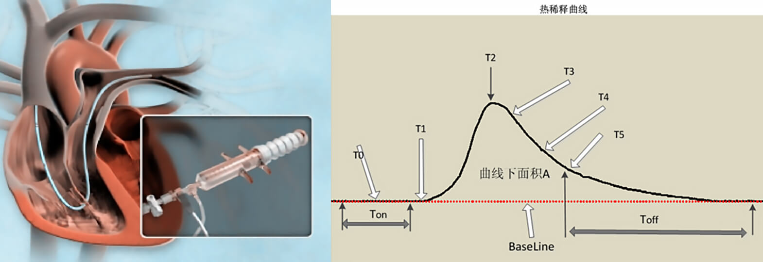 it can accurately record the change of the bleeding temperature, and the change of this blood temperature can be depicted in a curve, which is known as the time-thermal dilution curve, and through the relevant formulas and algorithms, it can be accurately projected from the cardiac output by analyzing this curve.
