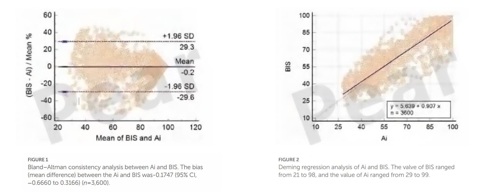 The following are a large number of statistical indicators of AI and BIS obtained under clinical verification, and the results show that the Ai index and the BIS index have significant consistency.