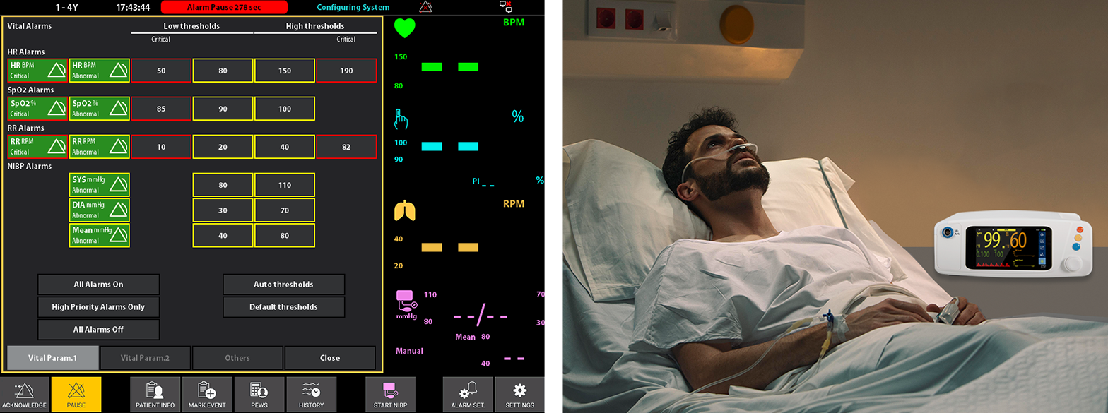 XH-60D: Desktop pulse oximeter, rich configuration, suitable for adults, pediatrics, and neonates, a variety of display interface settings to adapt to different application scenarioses.