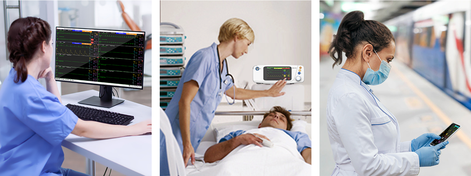 The XH-60D vital sign monitor supports interconnection with other systems in multi-patient mode. The saved data can be transmitted to the hospital information system platform using the HL7 protocol through the RJ45 network interface and WIFI. RS232 interface and Bluetooth communication function use its own protocol to transmit data, which can be easily connected to PC software or mobiles applications. In the single patient monitoring mode, it can be interconnected with the Vitoli Medical central monitoring system to realize the functions of the central monitoring system.