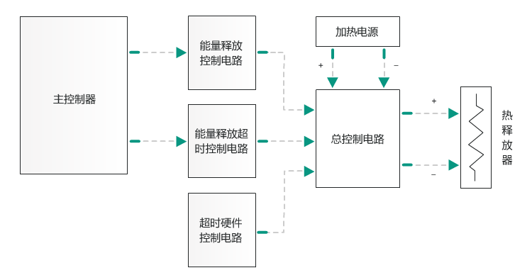 1)能量释放控制模块安全设计:热稀释法监测心排量需要控制漂浮导管的热释放器,漂浮导管直接与人接触,而且有热量释放到患者体内。因此,在临床应用时为了保证患者的安全,在控制热释放器时,采用了多重控制方式控制能量的释放:能量释放控制电路、能量释放超时控制电路、超时硬件控制电路。只有当这三重控制电路都满足加热要求时,总控制电路才启动加热电路,开始释放热量,若有一路请求关闭热量释放,系统则马上停止热释放器的工作。