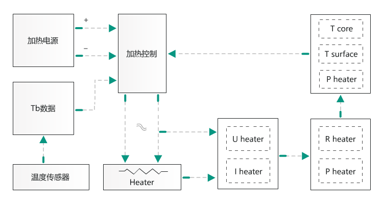 2)漂浮导管热释放器状态监测设计:若导管外置,血液静止,没有流动,系统就无法通过Tb反馈调节热释放器的工作,为了保证患者的安全、系统可靠地控制和精确地测量,在连续监测模式下,系统必须对漂浮导管的热释放器的状态进行监测,主要包括测量情况下监测漂浮导管的热释放器两端的电压和流经的电流,从而可以分析热释放器工作温度的变化[40],且可以得到释放功率、释放的能量的变化,而且可以精确控制监测过程中的能量释放。