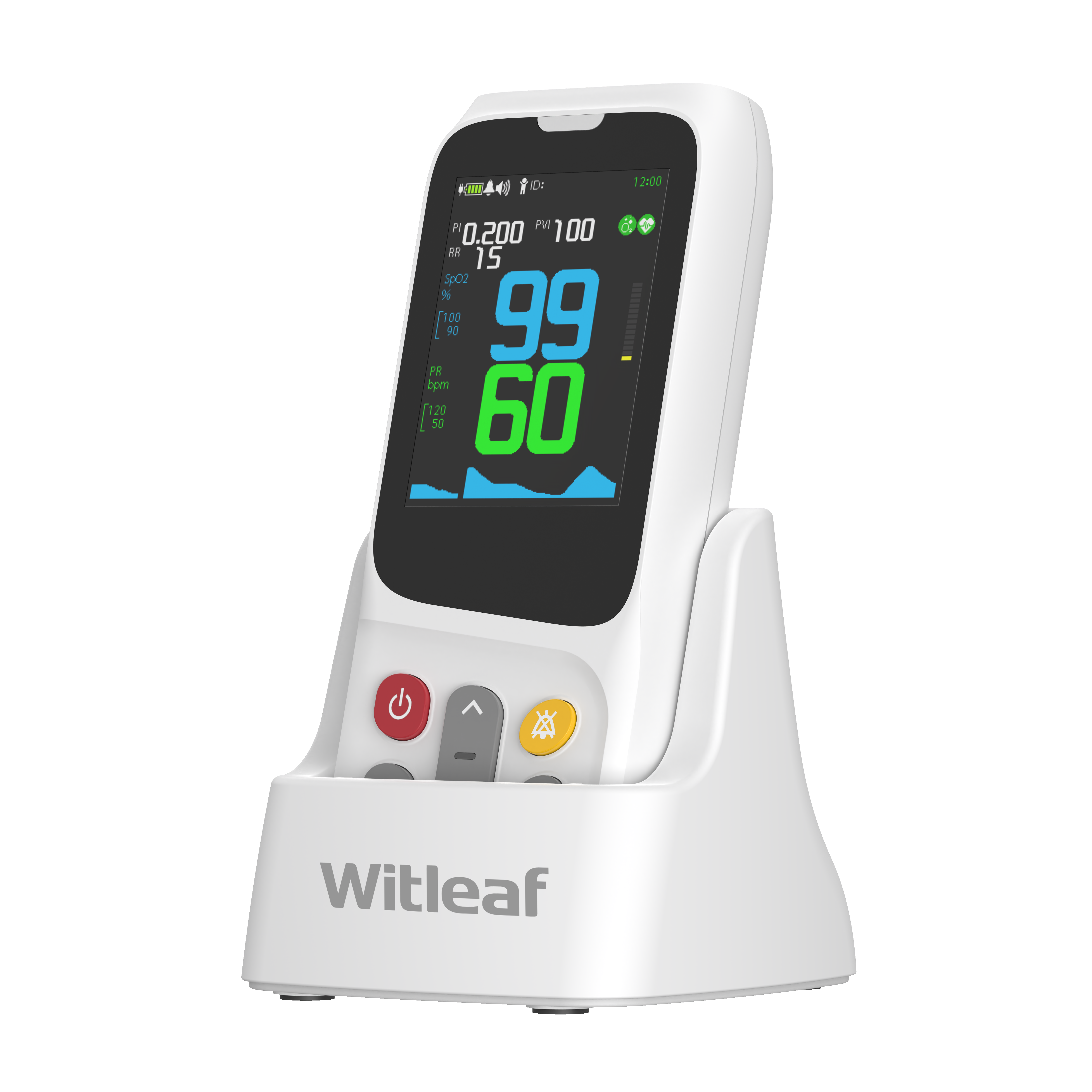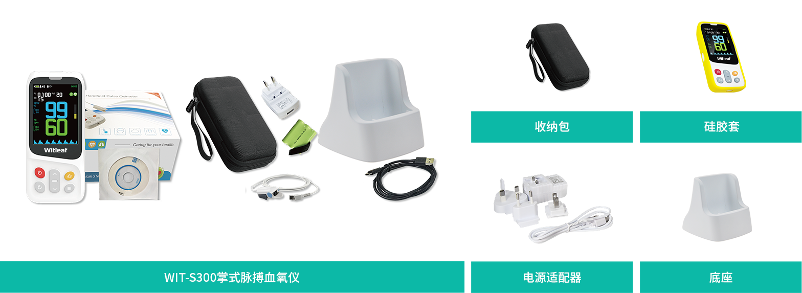 WIT-S300 掌式脉搏血氧仪,可以通过蓝牙与手机 APP 连接进行数据共享与管理,可以通过 USB 与 PC终端进行连接导出已存储的数据进行查看与打印。